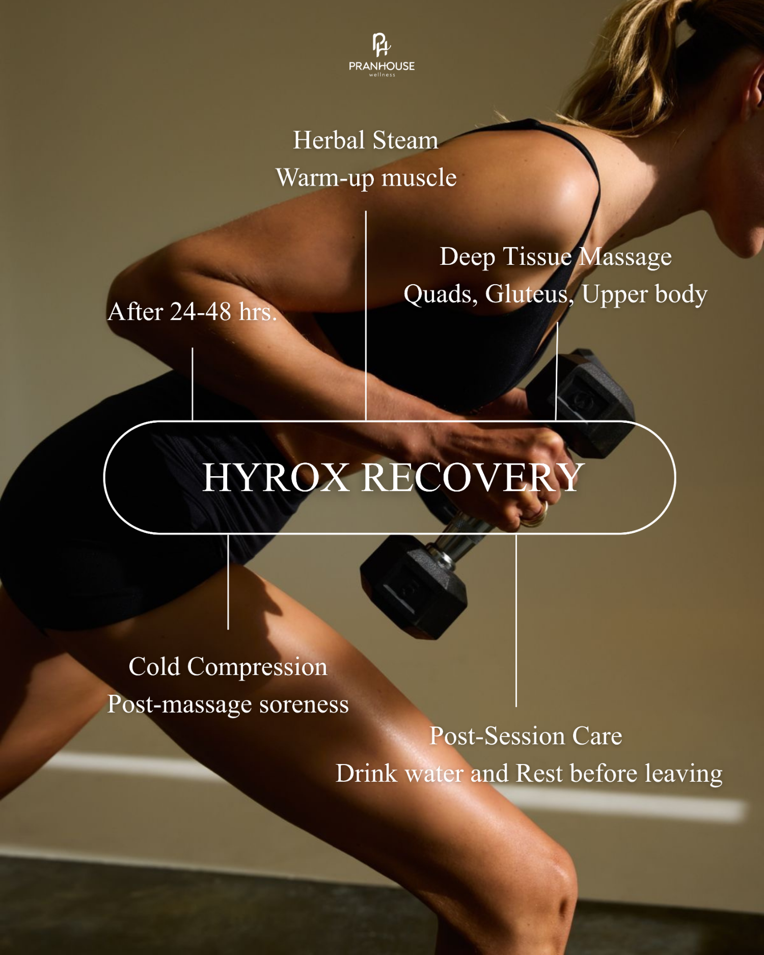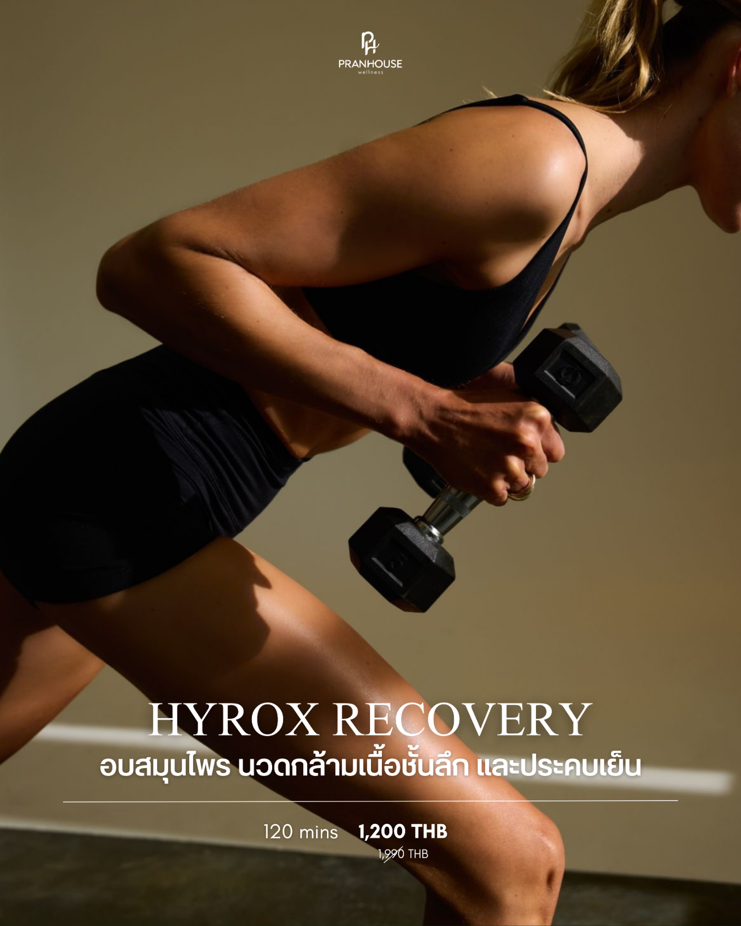 กู้ร่างหลังจบ Hyrox ด้วยโปรแกรมฟื้นฟู 3 ขั้นตอน: อบสมุนไพรเตรียมพร้อมสำหรับกล้ามเนื้อ, นวด Deep Tissue คลายพังผืดคลาย trigger point และปิดท้ายด้วย Cold Compression ลดการระบม ระยะเวลา 120 นาที